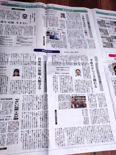 第25回「みんなの新聞コンクール」新聞感想文部門で