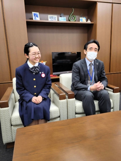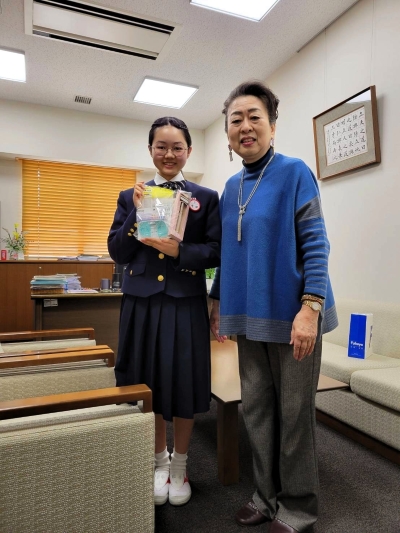 最優秀賞を受賞された安田女子中学校2年 中田結理さんに、
