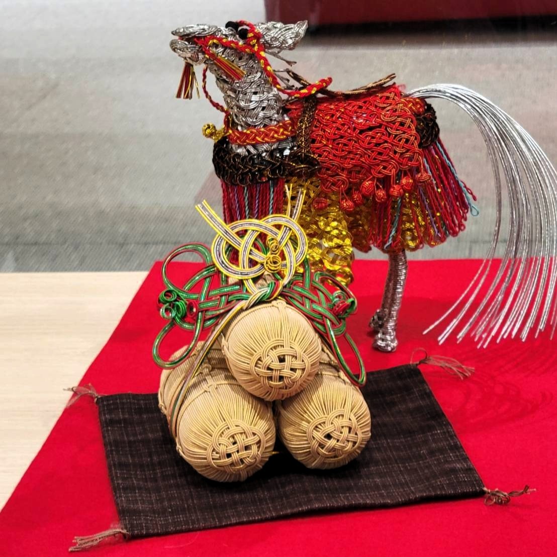 水引で作った来年の干支「午(うま)」を色紙の上に貼り、それぞれオリジナルのデザインに仕上げていきました🐎
