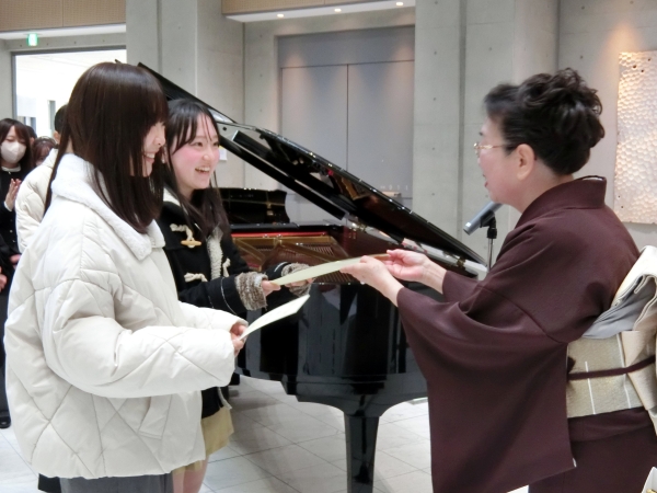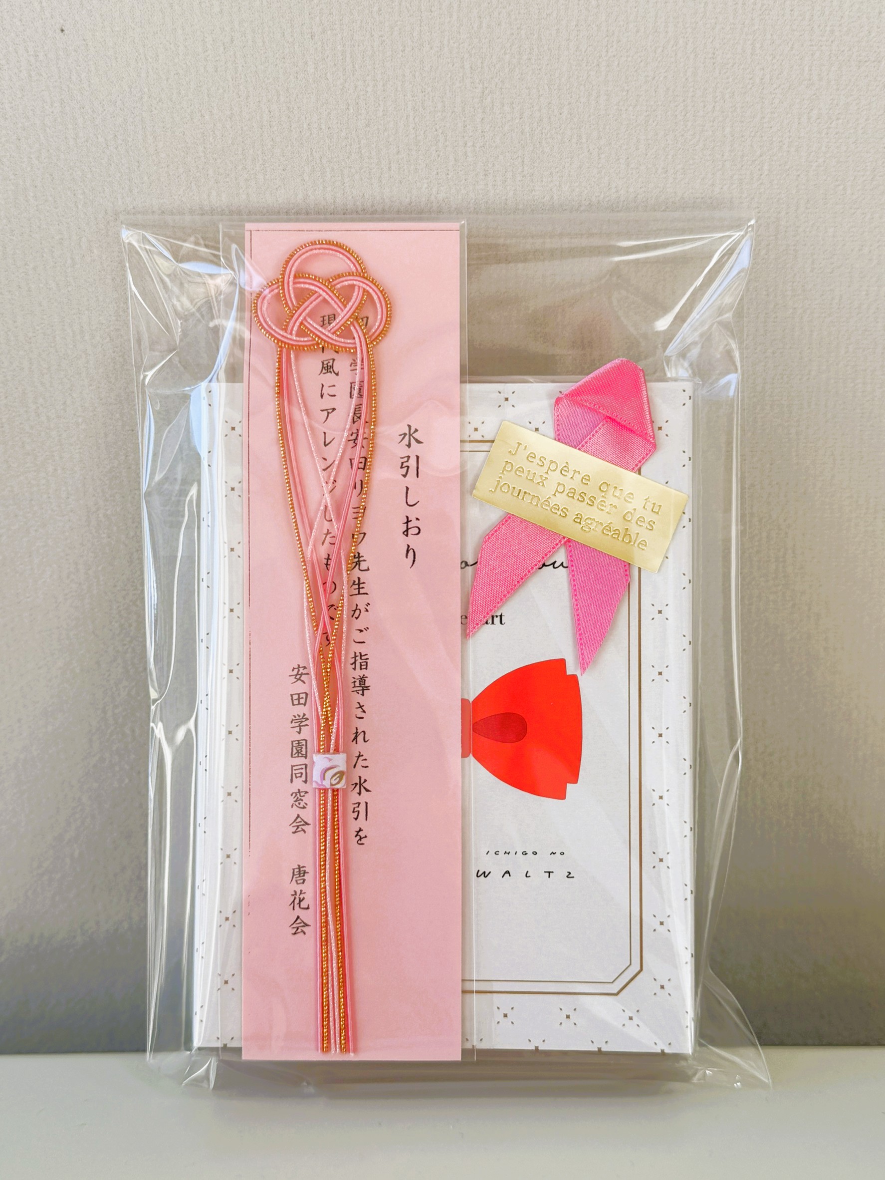 唐花会は本コンクールに協賛し、参加された学生の皆さん全員へ参加賞の水引しおりとお菓子をお渡ししました。