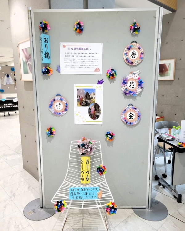 来場していただいた方々と共に折り鶴を折りながら、同窓会「唐花会」を知って頂く機会となりました。